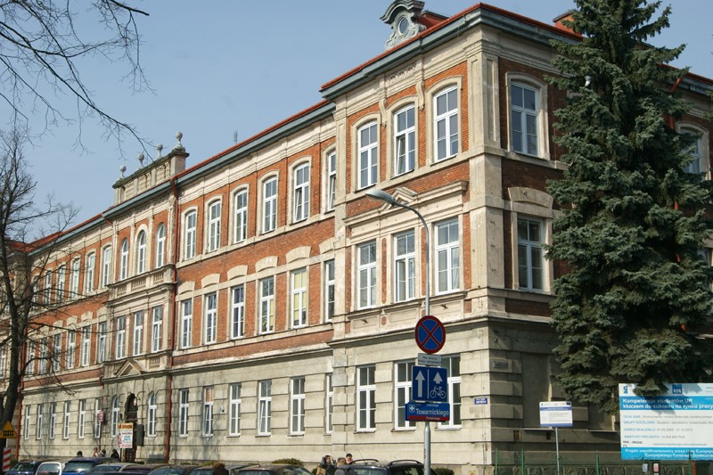 W latach 1879-1880 wzniesiono (prawdopodobnie wg proj. miejscowego budowniczego Edwarda Wrześniewskiego) żeńską Szkołę Wydziałową im. Scholastyki (obecnie gmach Uniwersytetu Rzeszowskiego przy ul. Grunwaldzkiej). Jest to duży trzykondygnacyjny budynek o symetrycznej 12-osiowej elewacji zaakcentowanej płytkimi ryzalitami po bokach, zwieńczonymi tympanonami. Zastosowano tu skromny detal architektoniczny w postaci boniowanych ścian parteru, gzymsów międzykondygnacyjnych, obramień okiennych z trójkątnymi przyczółkami, a okna ryzalitów II piętra rozdzielono jońskimi pilastrami.