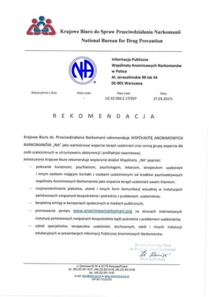 Informacja o wspólnocie Anonimowych Narkomanów